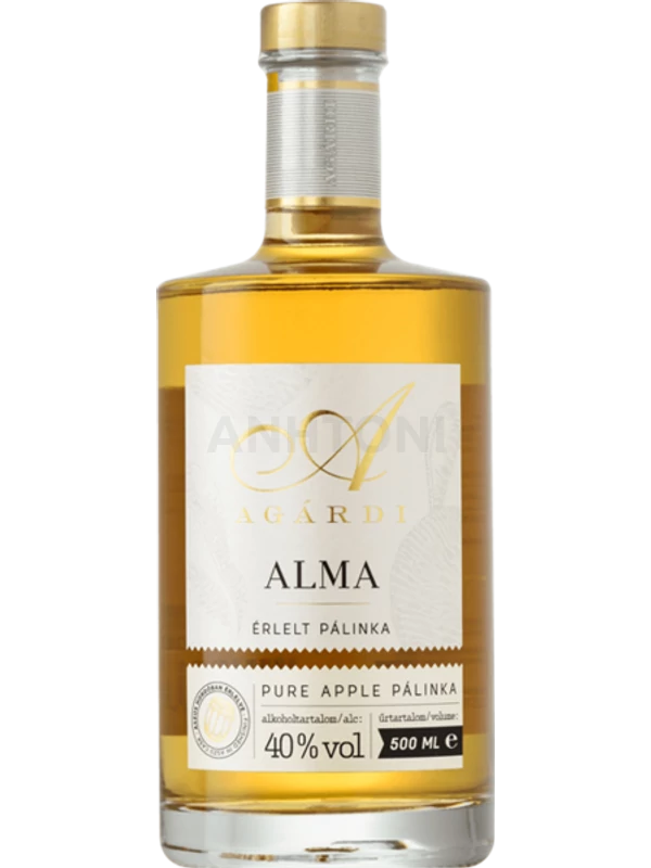 Az Agárdi Érlelt alma pálinka tölgyfahordóban érlelt, gazdag almás és fűszeres jegyekkel. 0,5 literes kiszerelése elegáns választás különleges alkalmakra.