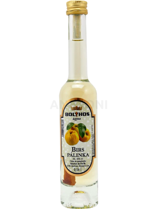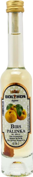 A Bolyhos ágyas birs pálinka 0,04 literes kiszerelésben.