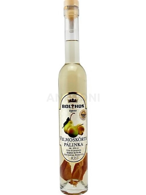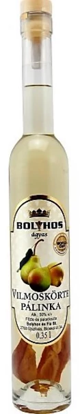 A Bolyhos ágyas vilmoskörte pálinka 0,04 literes kiszerelésben.