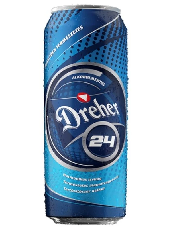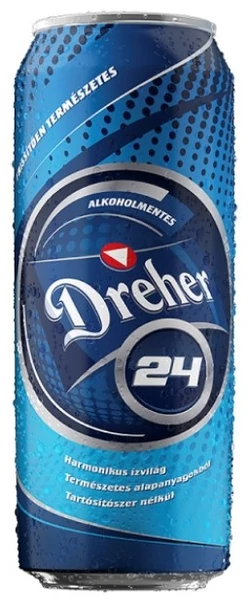 A Dreher 24 alkoholmentes sör friss, malátás és komlós ízvilágot kínál. 0,5 literes dobozos kiszerelésben.