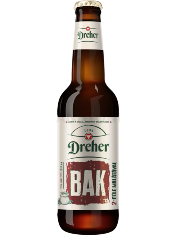 A Dreher Bak testes, malátás barna sör, 0,5 literes palackban.