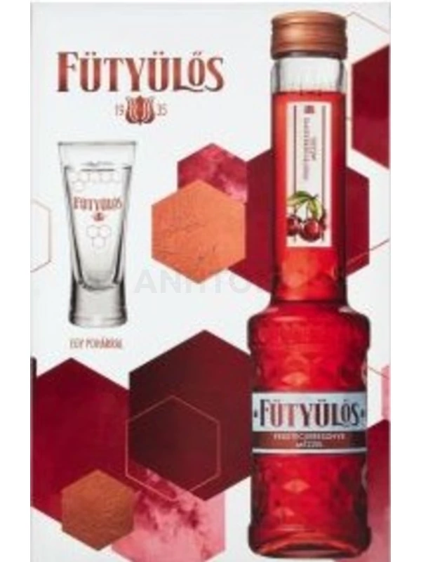 A Fütyülős meggy-méz likőr édes, gyümölcsös és mézes ízvilágot kínál, pohárral csomagolva.