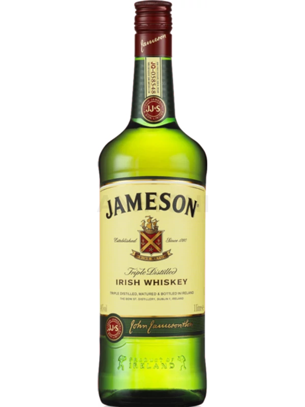 A Jameson világhírű ír whiskey, amely lágy, gyümölcsös és fűszeres jegyekkel hódít. 1 literes palackban, 40%-os alkoholtartalommal.