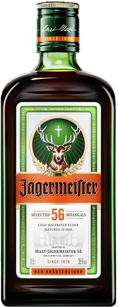 A Jägermeister 0,5 literes palackban kínálja ikonikus, gyógynövényes ízvilágát. 35%-os alkoholtartalommal.