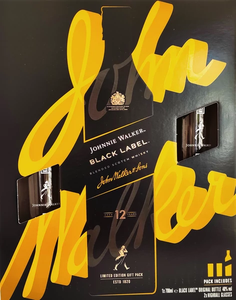 A Johnnie Walker Black Label gazdag, füstös ízvilágot kínál. 0,7 literes palackban, díszdobozban, két pohárral.