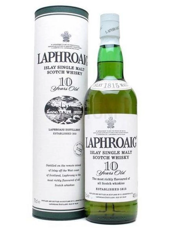 A Laphroaig 10 éves whisky jellegzetesen füstös, tőzeges ízvilágot kínál. 0,7 literes palackban, díszdobozban.