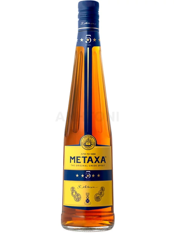 A Metaxa 5* gazdag, fűszeres és gyümölcsös jegyekkel hódít. 0,5 literes palackban, 38%-os alkoholtartalommal.