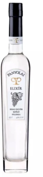 A Panyolai Elixír Irsai Olivér pálinka a szőlőfajta jellegzetes, muskotályos aromáit emeli ki. 43%-os alkoholtartalma erőteljes, mégis elegáns élményt nyújt.