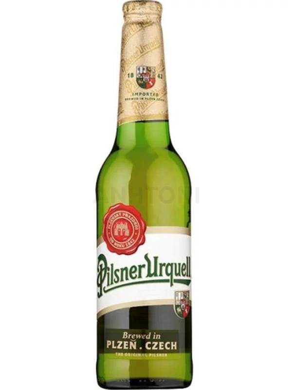 A Pilsner Urquell klasszikus cseh világos sör, 0,5 literes palackban.