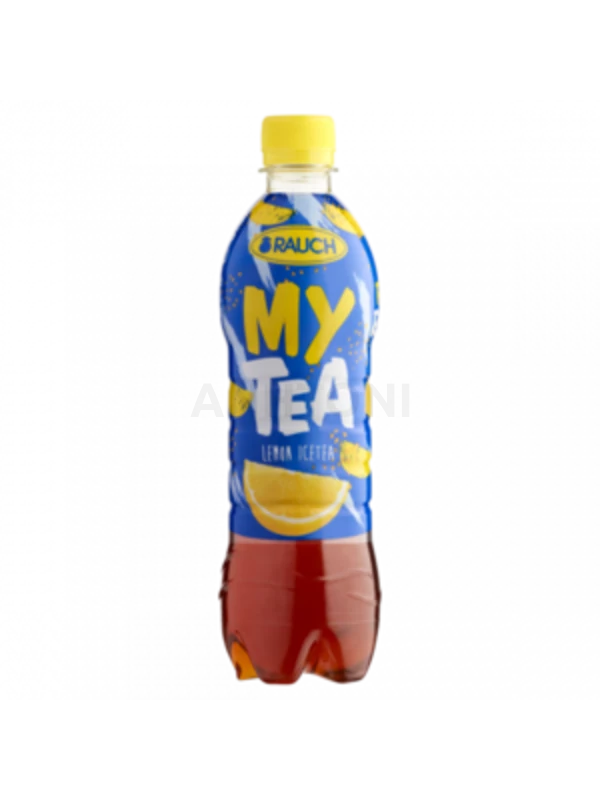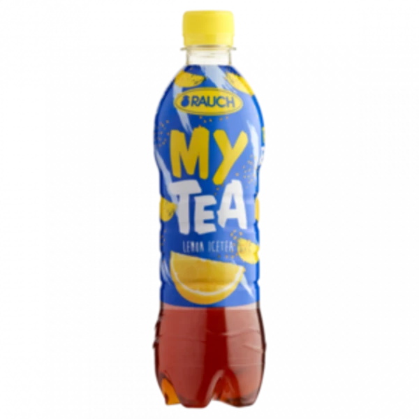 A Rauch citrom ízesítésű jeges tea frissítő, üdítő ital, 0,5 literes palackban.