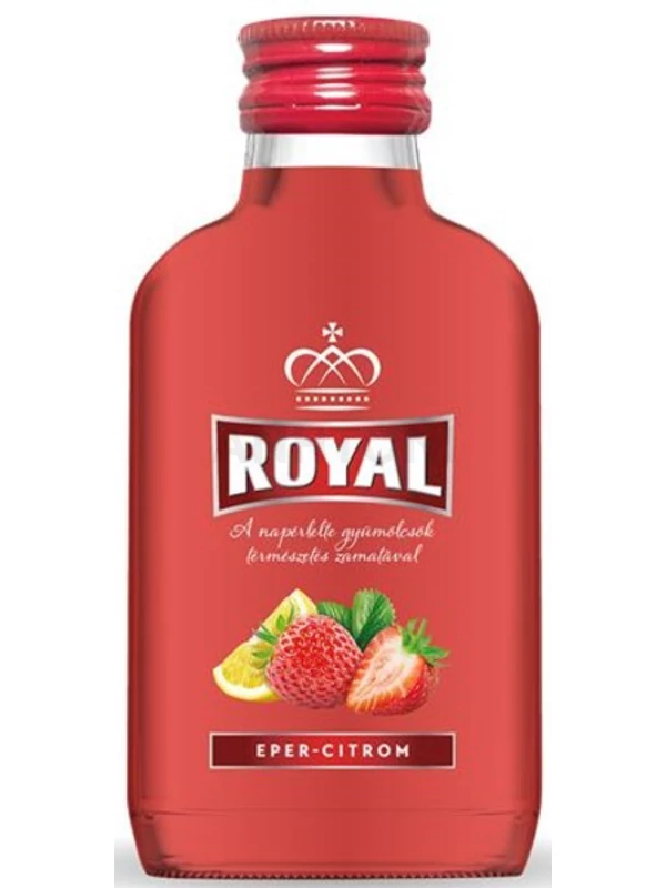 A Royal Vodka eper-citrom ízesítésű változata friss, gyümölcsös ízvilágot kínál. 0,09 literes palackban, 26%-os alkoholtartalommal.