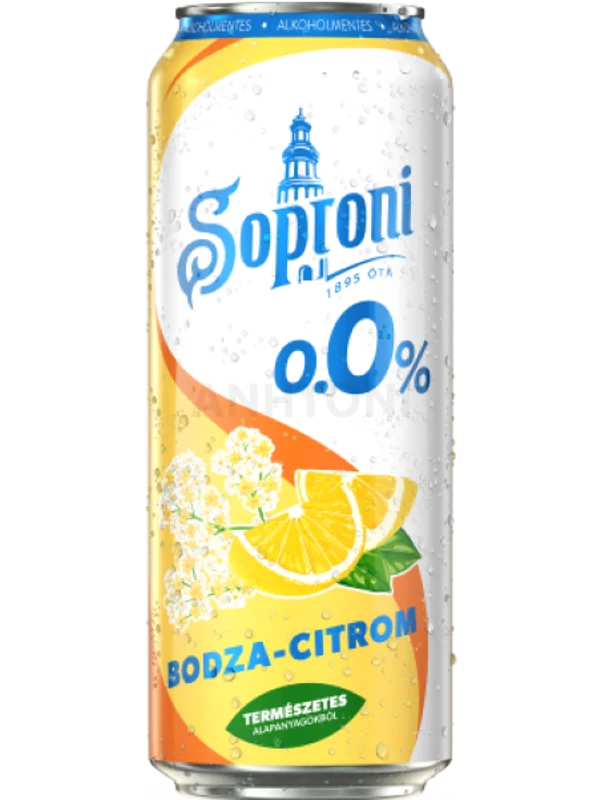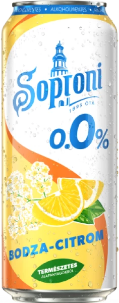 A Soproni 0.0% bodza-citrom ízesítésű változata friss, üde ízvilágot kínál.