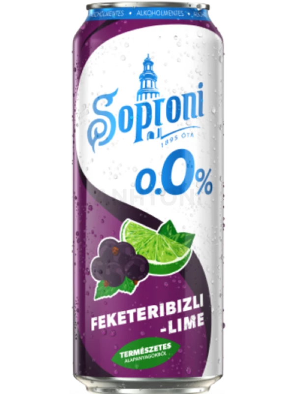 A Soproni 0.0% feketeribizli-lime ízesítésű változata friss, gyümölcsös ízvilágot kínál.