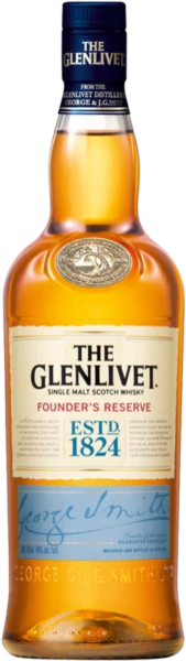 A Glenlivet Founders Reserve gazdag, gyümölcsös és tölgyfás jegyekkel hódít, 0,7 literes palackban.