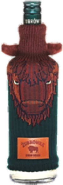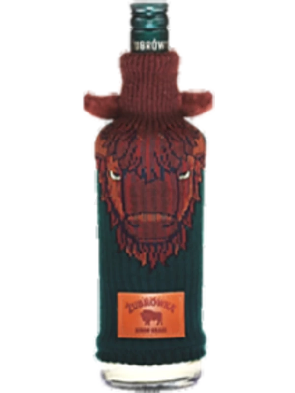 A Zubrowka Bison vodka 0,7 literes palackban, kiegészítve egy Zubronka minivel.