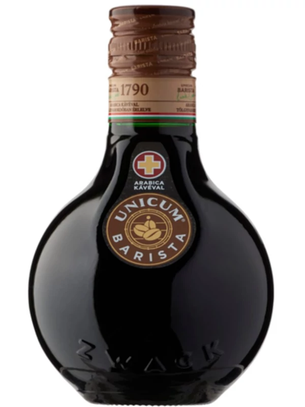 Az Unicum Barista kávé ízesítésű gyógynövénylikőr, 0,5 literes palackban, 34,5%-os alkoholtartalommal.