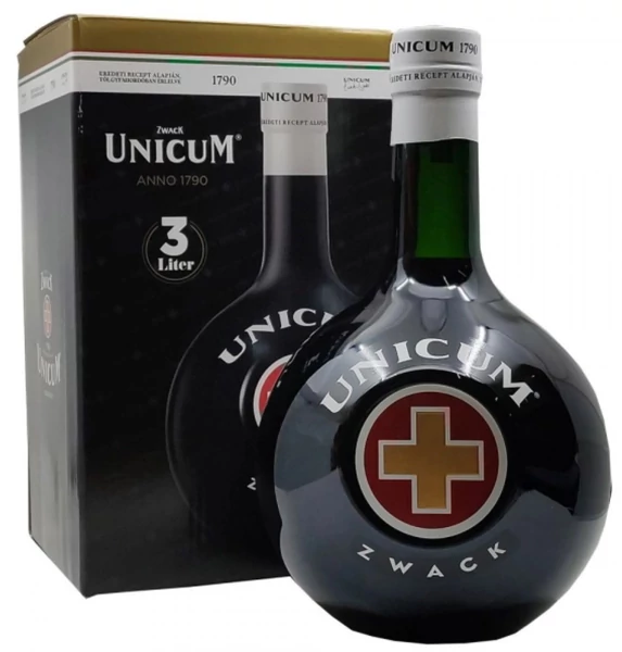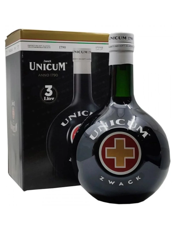 A Zwack Unicum 3 literes változata elegáns díszdobozban érkezik. Gazdag gyógynövényes ízvilága és 40%-os alkoholtartalma ikonikus magyar különlegességgé teszi.